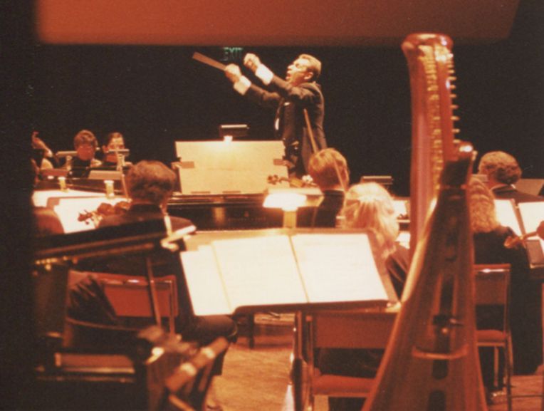 rehearsing Ronald Foster's ". . . on the Wings of Angels" (May 2003).